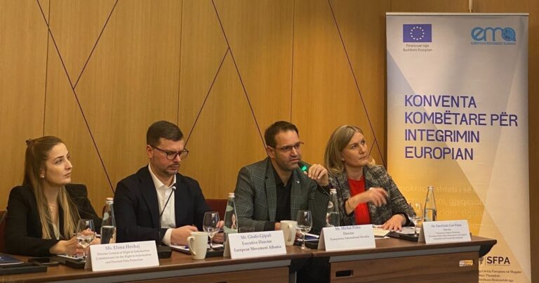 A discussion roundtable was held in Tirana on 13 November, organized by the European Movement in Albania (EMA) and the Commissioner for the Right to Information and Protection of Personal Data, within the framework of the National Convention for European Integration. The event focused on the right to information, institutional challenges, and the role of civil society in strengthening transparency and accountability.