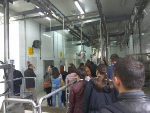 Gjatë vizitës së realizuar në një nga fabrikat e mishit në vend që përmbush të gjitha standardet e vendosura nga Bashkimi Europian mbi sigurinë ushqimore dhe cilësinë e ushqimit, të rinjtë dhe studentët pjesëmarrës u njohën më nga afër më gjithë procesin e përpunimit të mishit që nga rritja dhe ushqimi deri tek pastrimi dhe përpunimi i tij e më pas dalja në treg dhe konsumimi. Gjatë vizitës pjesëmarrësit vizituan ambientet përkatëse dhe u njohën me të gjithë procesin, ku u diskutua mbi temat kryesore që lidhen me respektimin e standardeve dhe sigurisë, për të nxjerr në fund një produkt të sigurt për t’u konsumuar, duke përmbyllur ciklin nga ferma në tavolinë.